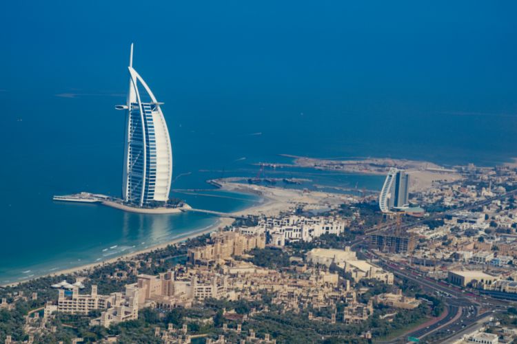 【卓美亚帆船酒店】(外观)无疑是迪拜最著名的地标和旅游景点之一,并以其“七星级的地位”而闻名。这家创造了行业新纪录的豪华全套房酒店拥有一系列高级餐厅、美丽的海滩和宽阔的卓美亚帆船露台。自1999年开业以来,卓美亚帆船酒店接待了来自世界各地的无数贵宾和名人,令迪拜跻身全球豪华旅游版图。酒店拥有自己的岛屿,帆船形的建筑高321米,客人在入住的客房中便可尽享阿拉伯湾美景。